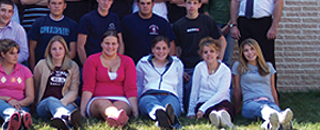 This is a picture of the students who built the sleds and their mentors: Mr. Lutkus and Mr. Eisenhuth.