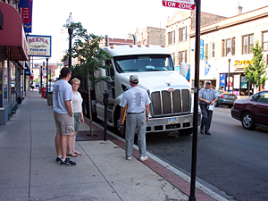 Left: Builders, Billig and Coca-Cola representatives. Right: On the road to Chicago.
