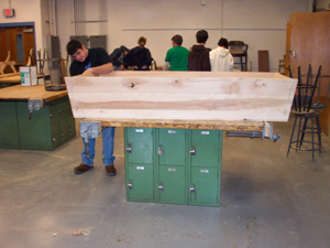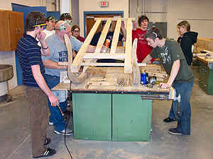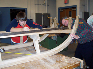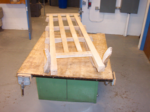 Left: Finished sled box. Right: Cutting tapers on sled ribbing.